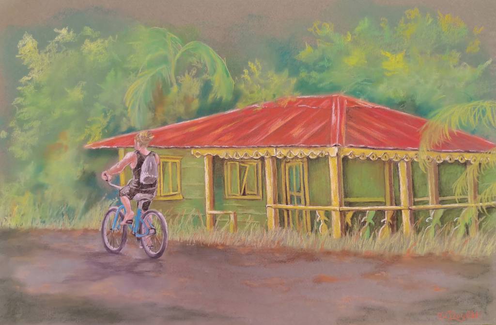 Una casa en el hermoso estilo caribeño, un joven descalzo en su bicicleta. Tal vez él regresa de surfear. En el Caribe Sur de Costa Rica, el tiempo se detiene...